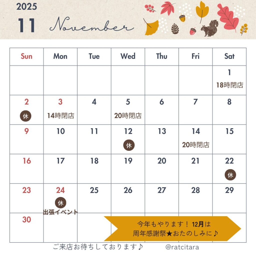 11月になりました!なんと2025年もあと2か月。。。