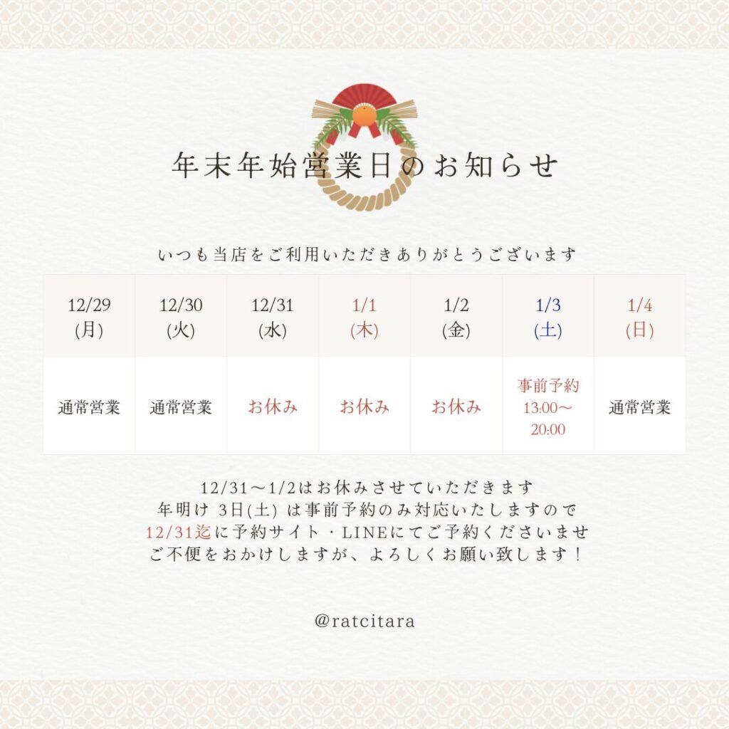 ラッチターラは、年内30日(火曜日)まで通常通り営業いたします♪